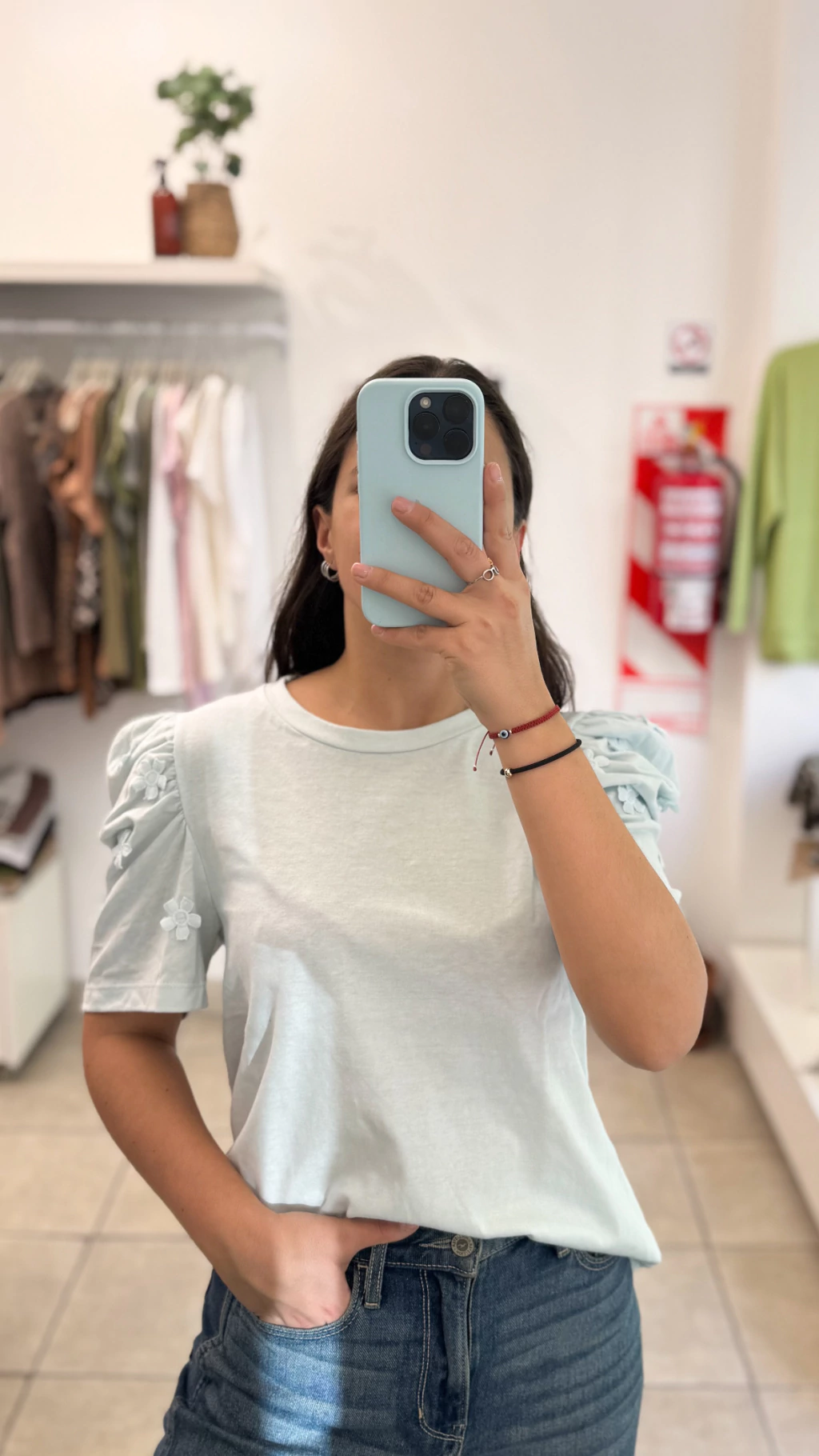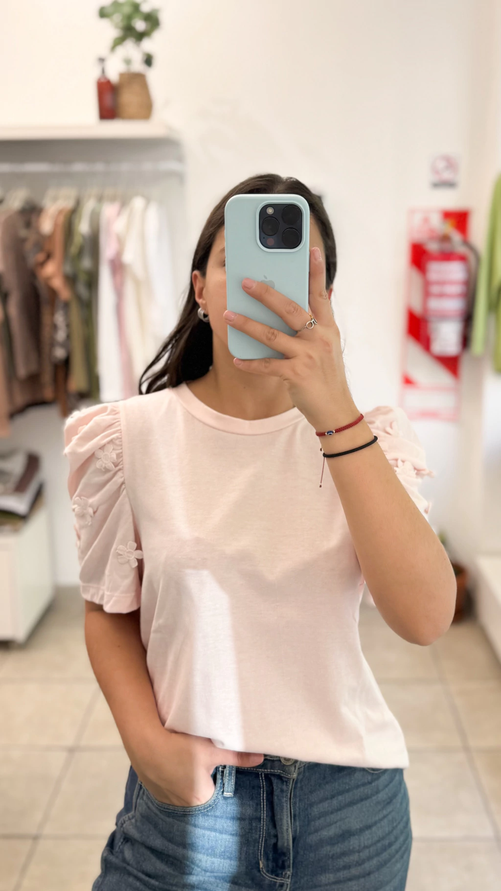 ¡Descubrí la Remera Flores, un toque romántico para tu guardarropa! Confeccionada en algodón Jersey 24/1, garantiza suavidad y frescura durante todo el día. Su escote redondo con limpieza de costura en la espalda aporta un acabado delicado y cómodo. Las mangas princesa, decoradas con florcitas de puntillas al tono, suman un detalle femenino y sofisticado que realza cualquier look.