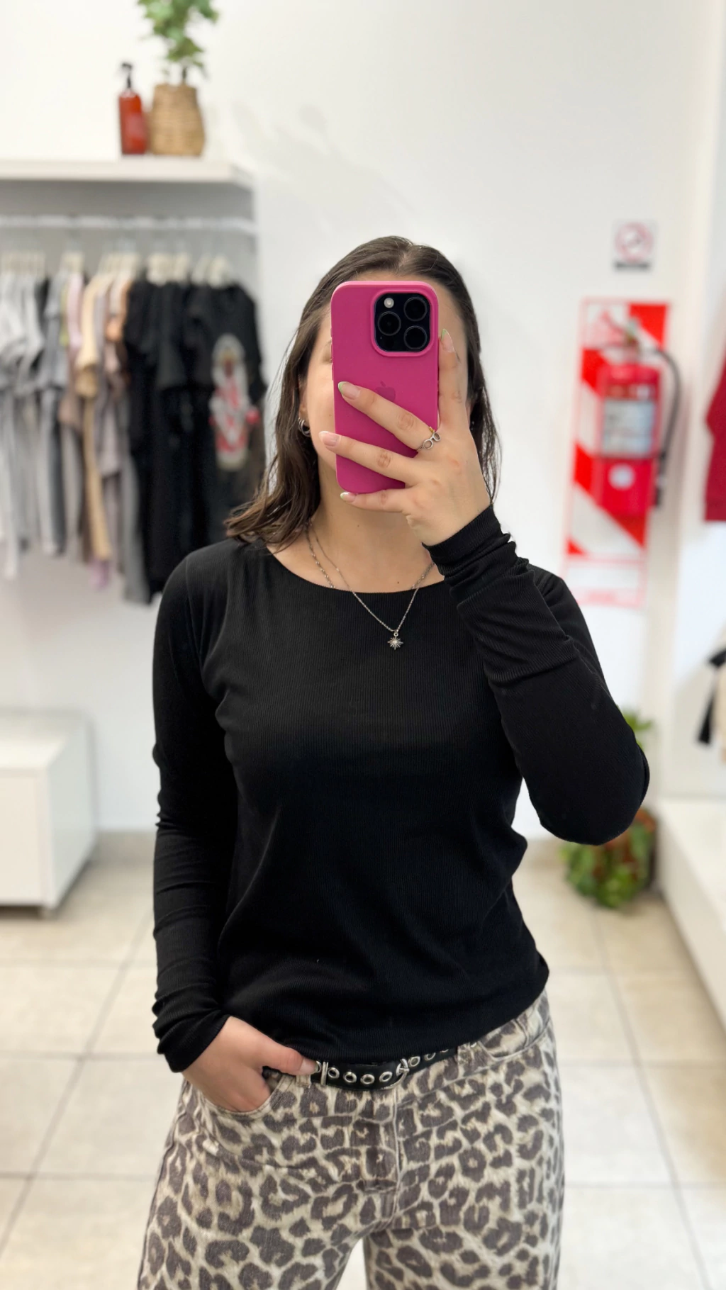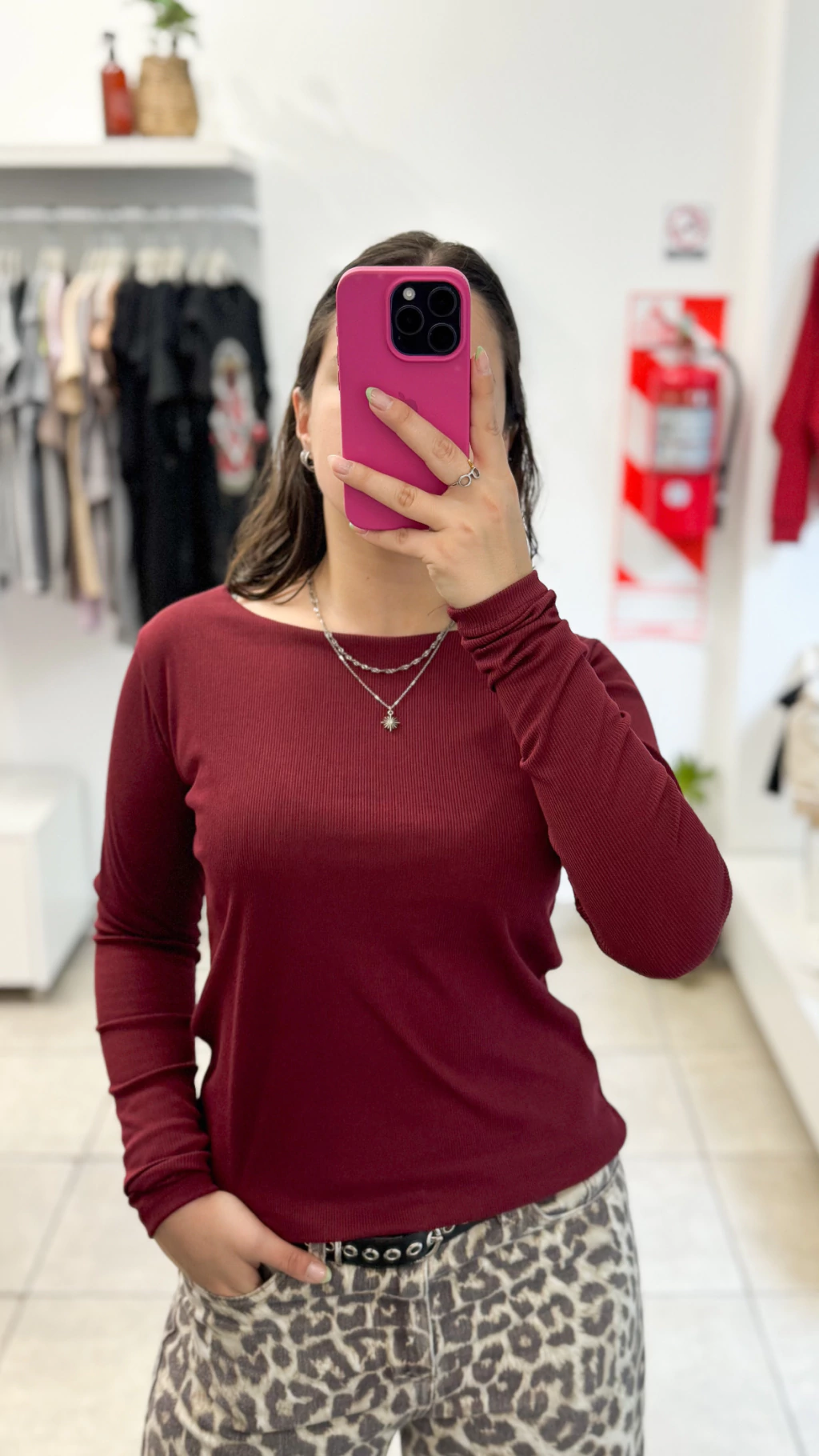 Remera manga larga con escote tipo bote, sin vivo. Doble tela en el busto para no transparentar.